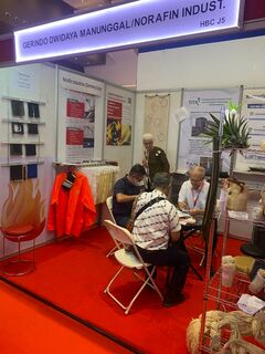Gemeinschaftsstand mit den Firmen Maschinenfabrik Herbert Meyer GmbH, Norafin Industries (Germany) GmbH, Thüringisches Institut für Textil- und Kunststoff-Forschung e. V. mit Vliesen für Schutzausrüstungen (Feuer, Strom), Doppelbandpressen für Composites, Naturfasern von Ananas und der Zuckerpalme und deren Garne und Vliese.
